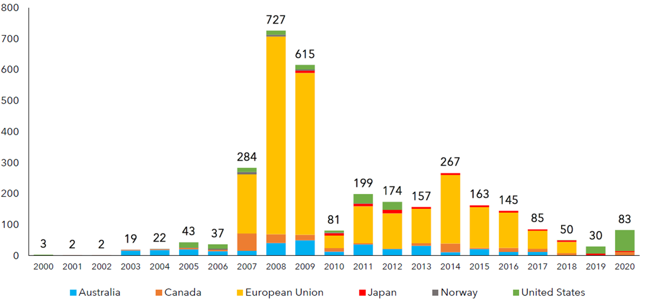 Figure 1: Bilateral SPS technical assistance (in USD millions)