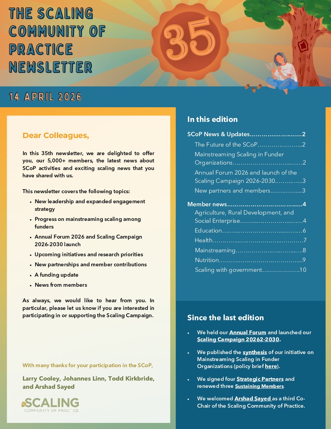 In this 35th newsletter, we are delighted to offer you, our 5,000+ members, the latest news about SCoP activities and exciting scaling news that you have shared with us.